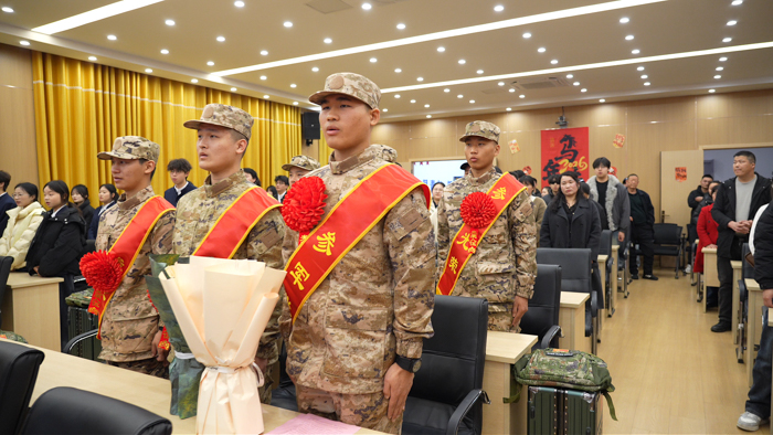 欢送会上还特别提到,我校退役士兵大学生——工商管理学院的胡勇成同学、信息工程学院的陈星宇同学,发扬“星青年”服务回报社会的责任担当,正在各自户籍地武装部的役前教育集训营担任新训教官,用自己的军旅经验帮助新一批入伍青年迈好军旅第一步。